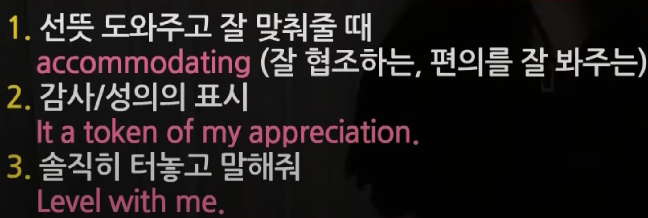 I appreciate you accommodating us. = 저희에게 협조해 주셔서 감사합니다.