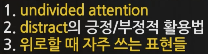 (2) distract = 신경을 흐트러뜨리다. 로 잘 알려진 단어이지만, 여기서는 긍정적 의미의 "마음을 다른 데로 쏠리게 해서) 기분 전환을 해주는 것/ 머리를 식히게 해주는 것"에 대해 알아봅시다.