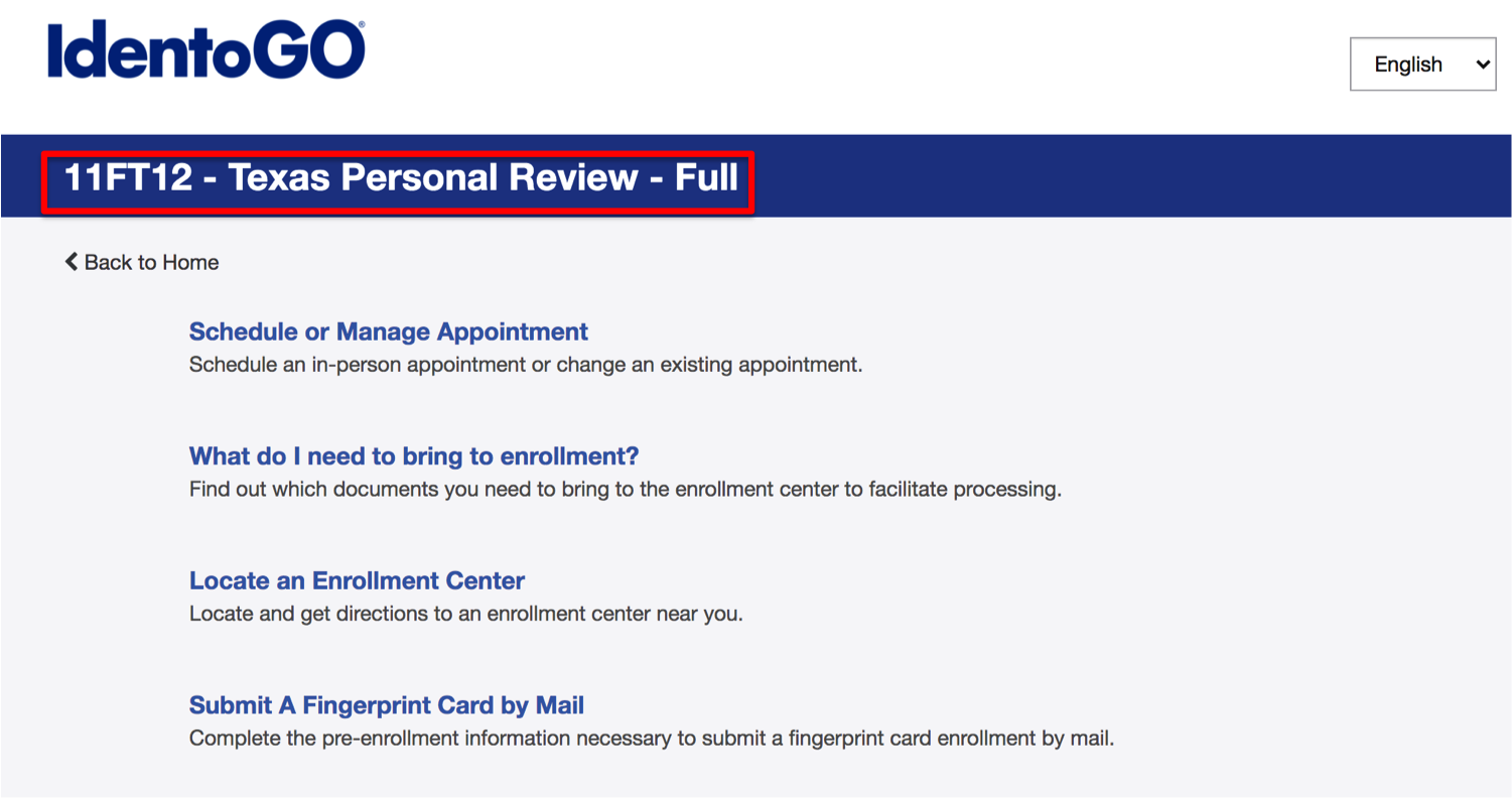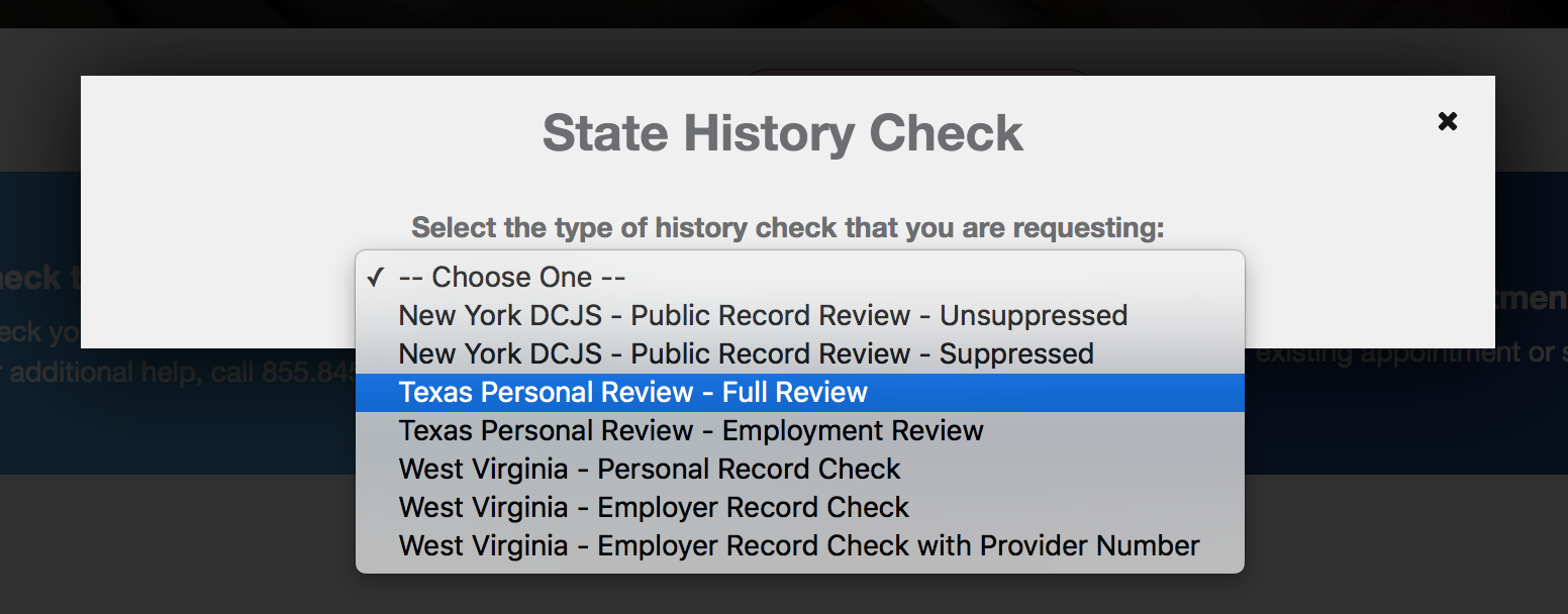 삽질 2번째, criminal record를 받기 위해서는 밑에 그림처럼 Texas Personal Review를 선택해야 한다.