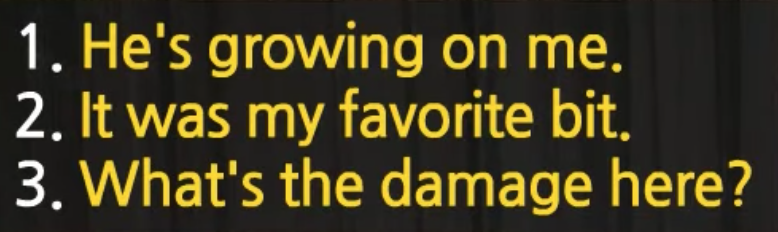 What did you think was the best bit of the movie? = 그 영화에서 어떤 부분이 가장 마음에 들었어?